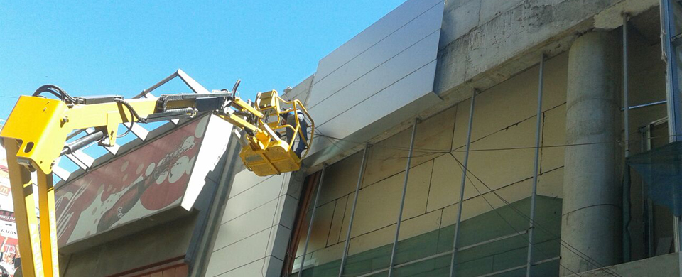 Fabricación y Montaje de Frente de alocubond con vidrio en Coto Lavalle "Costa Atlántica".
