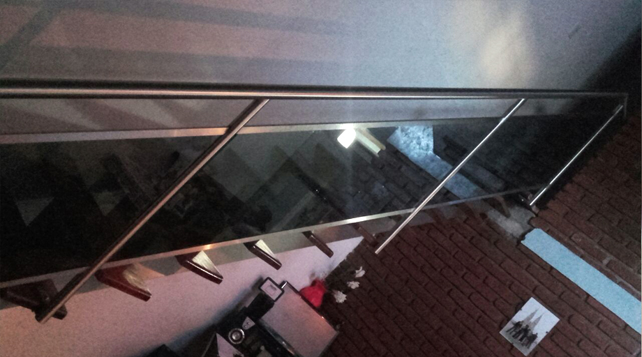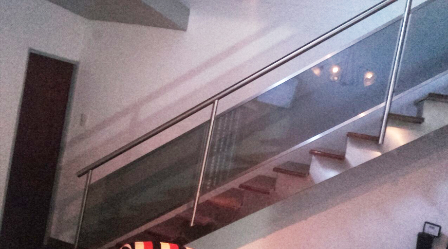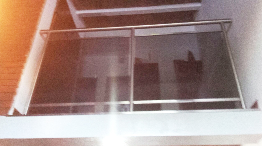 Baranda fabricada y montada en acero inoxidable con vidrio.